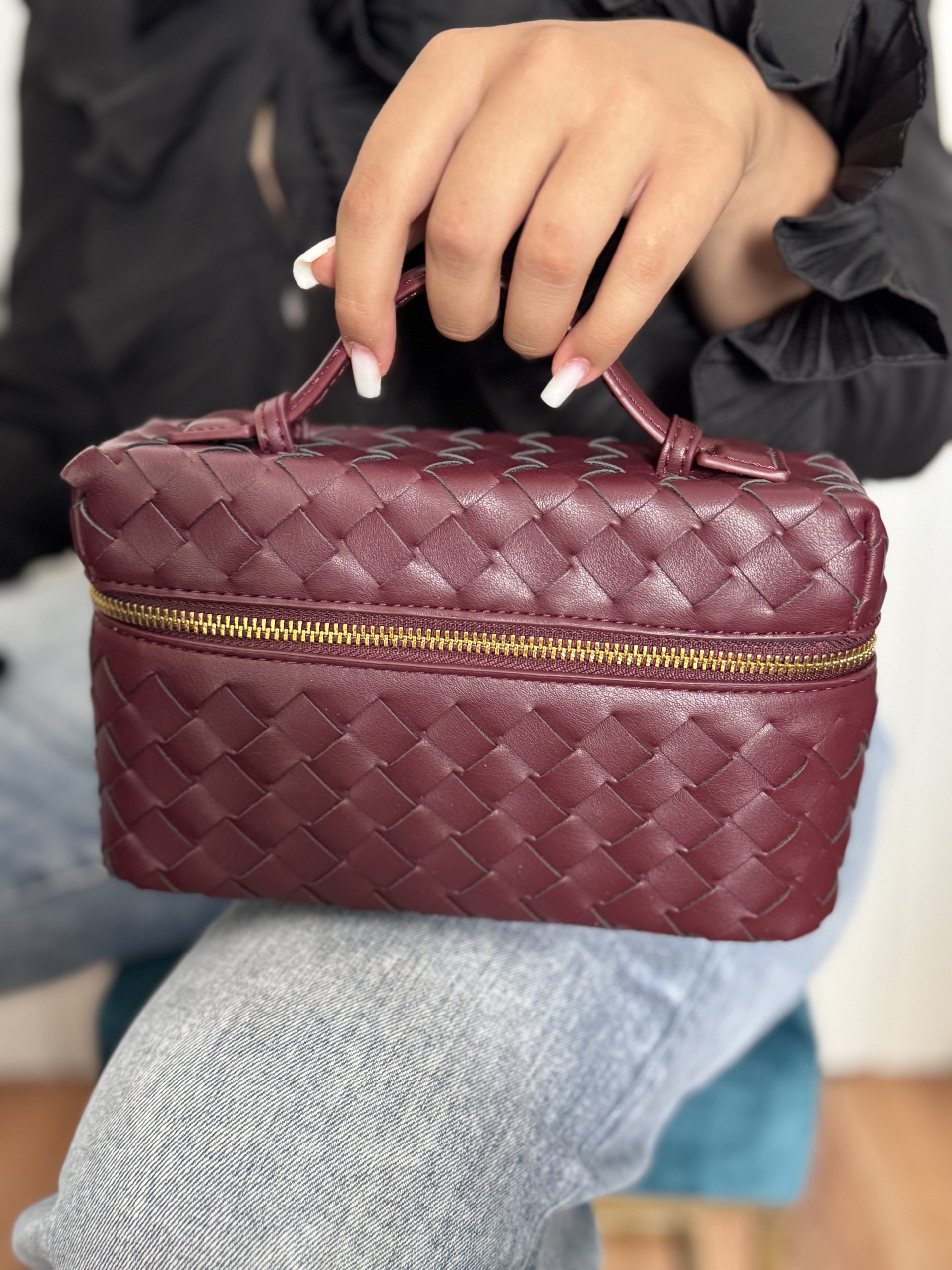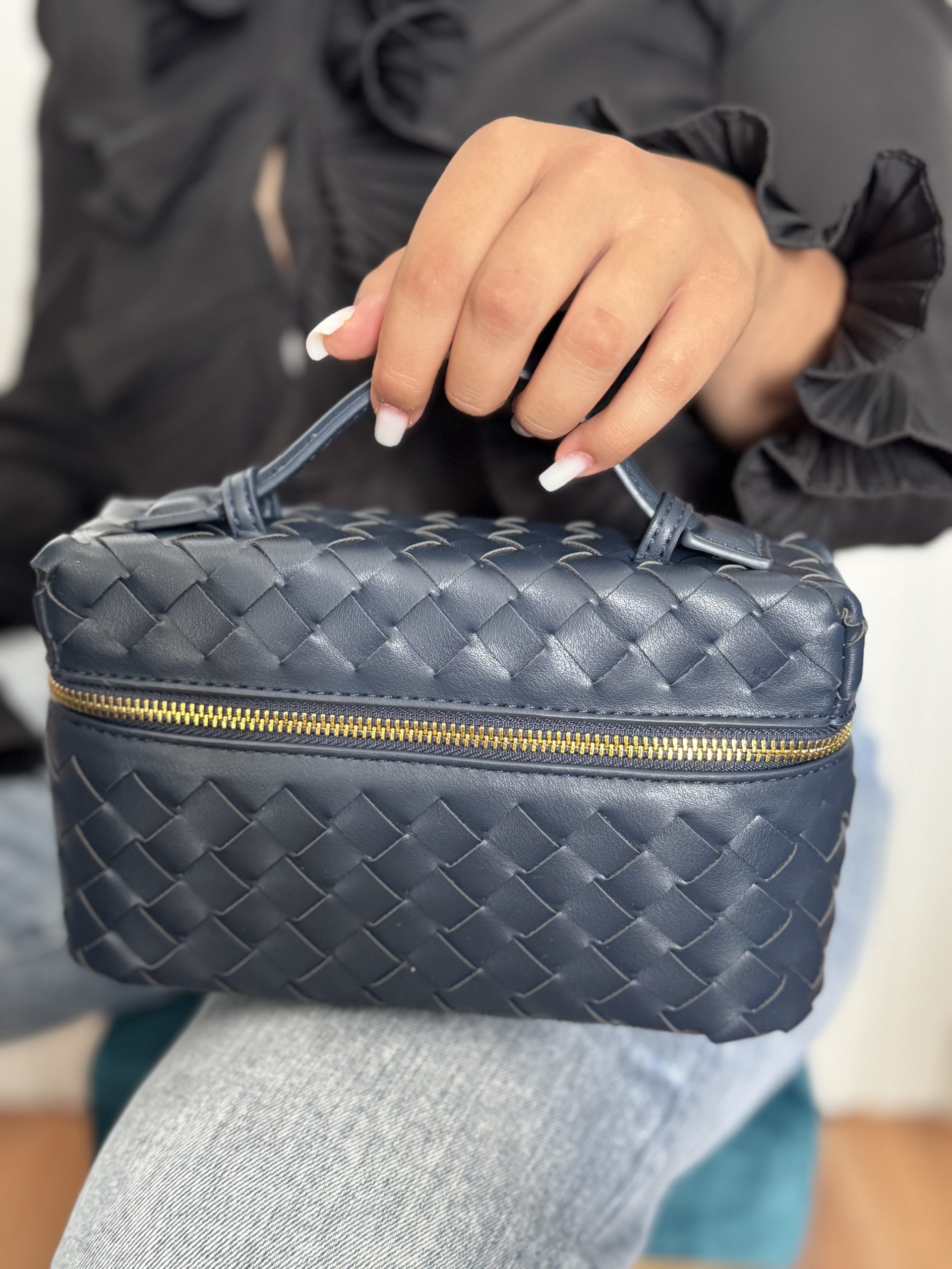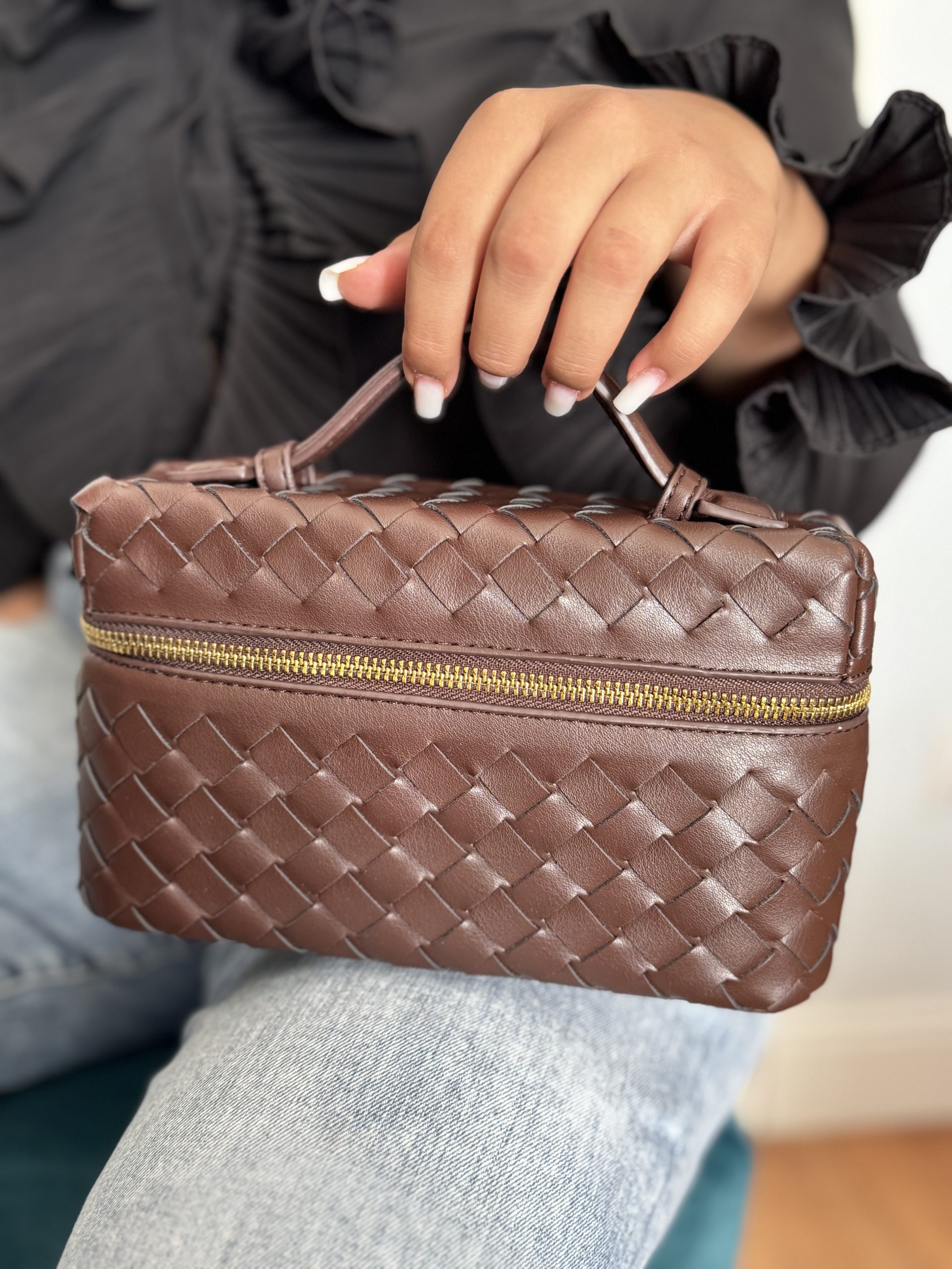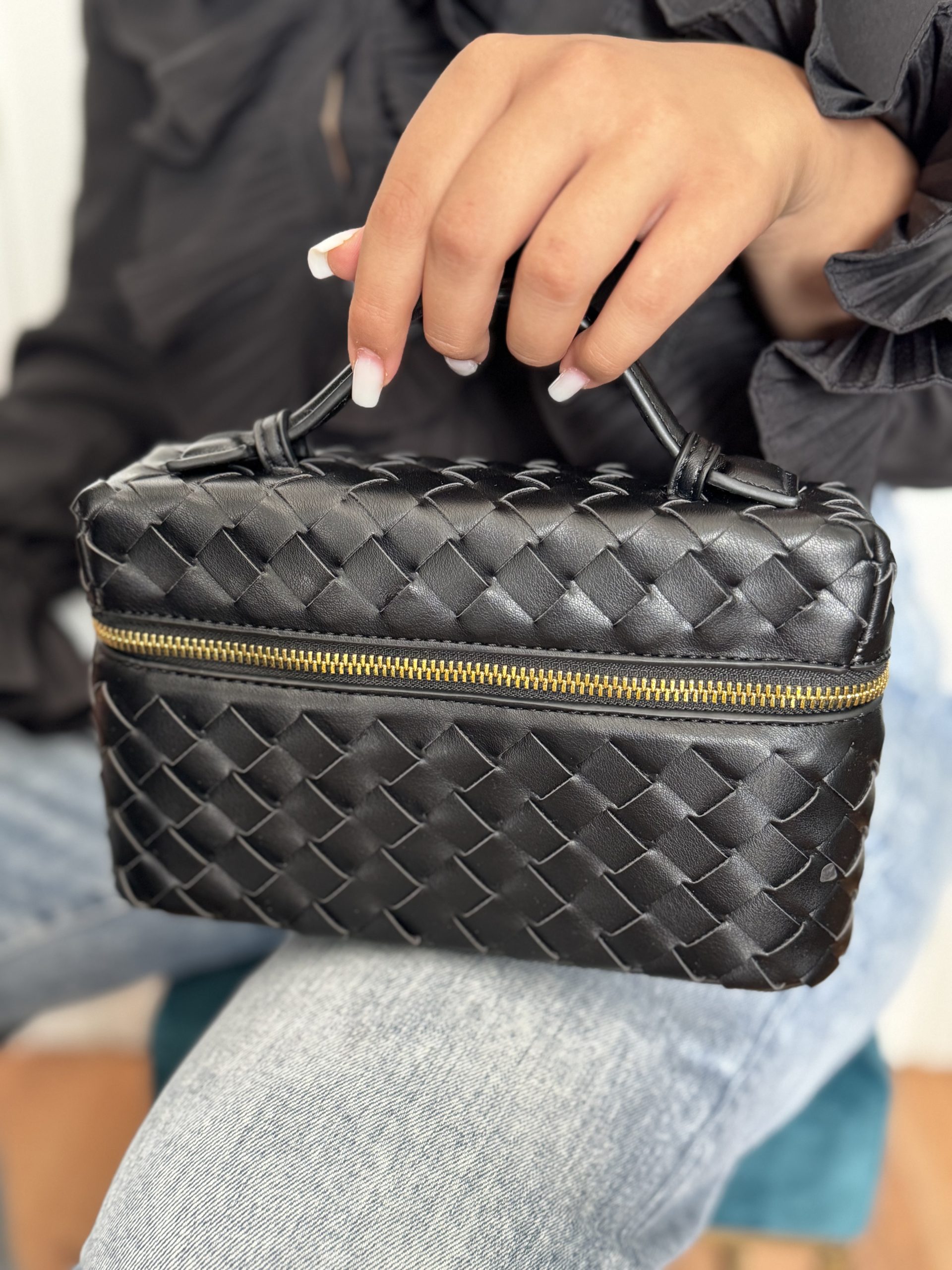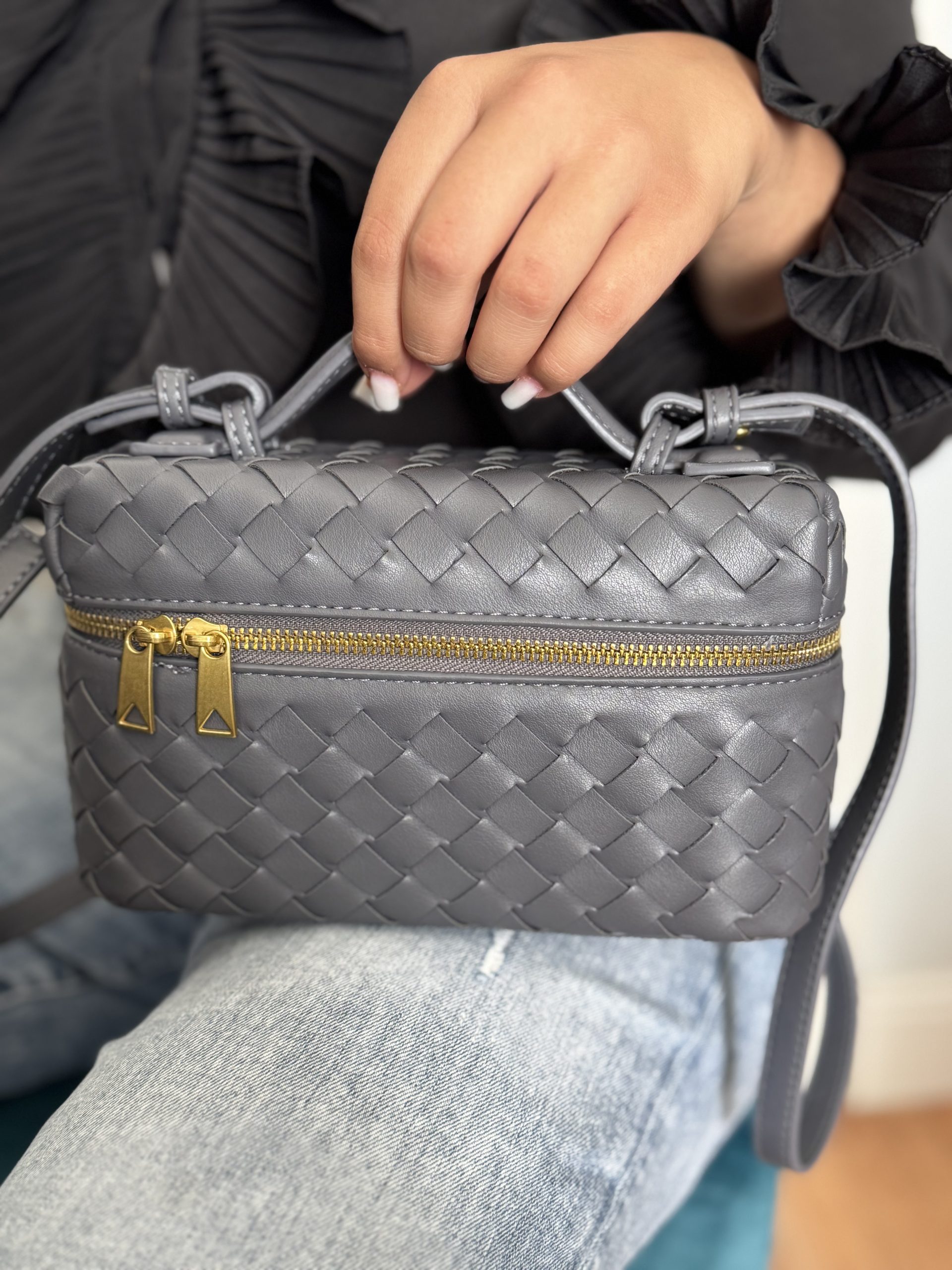 La borsa piccola modello intrecciato con tracolla e zip laterale.